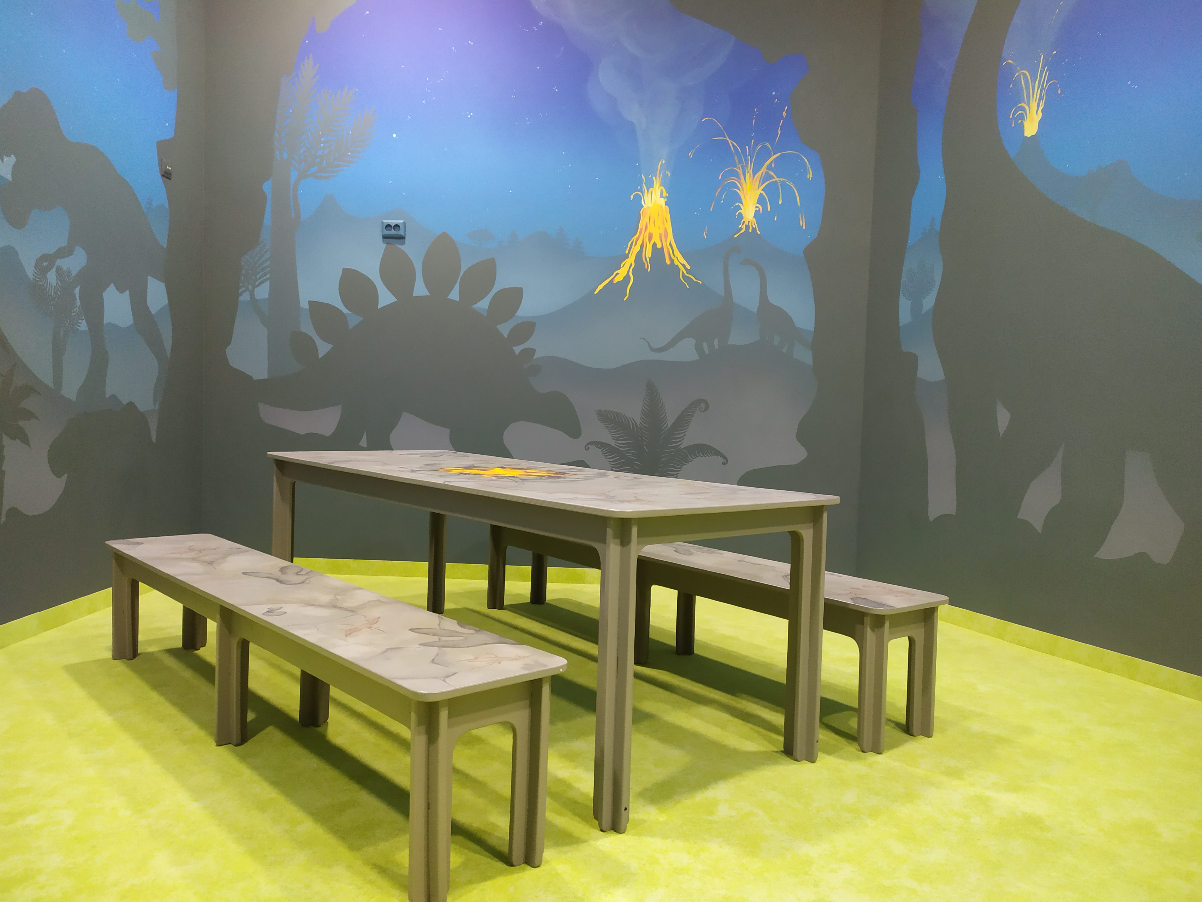 - Пещера динозавра: Здесь ваши маленькие искатели приключений окажутся в мире древних рептилий, окружённых реалистичными декорациями и эффектами.